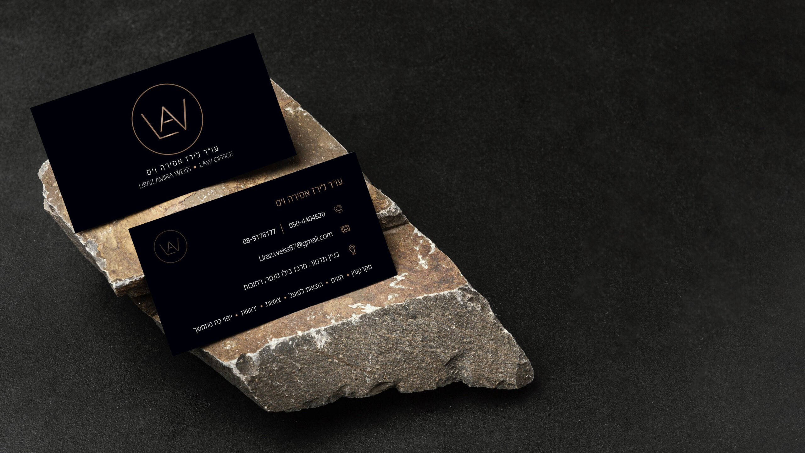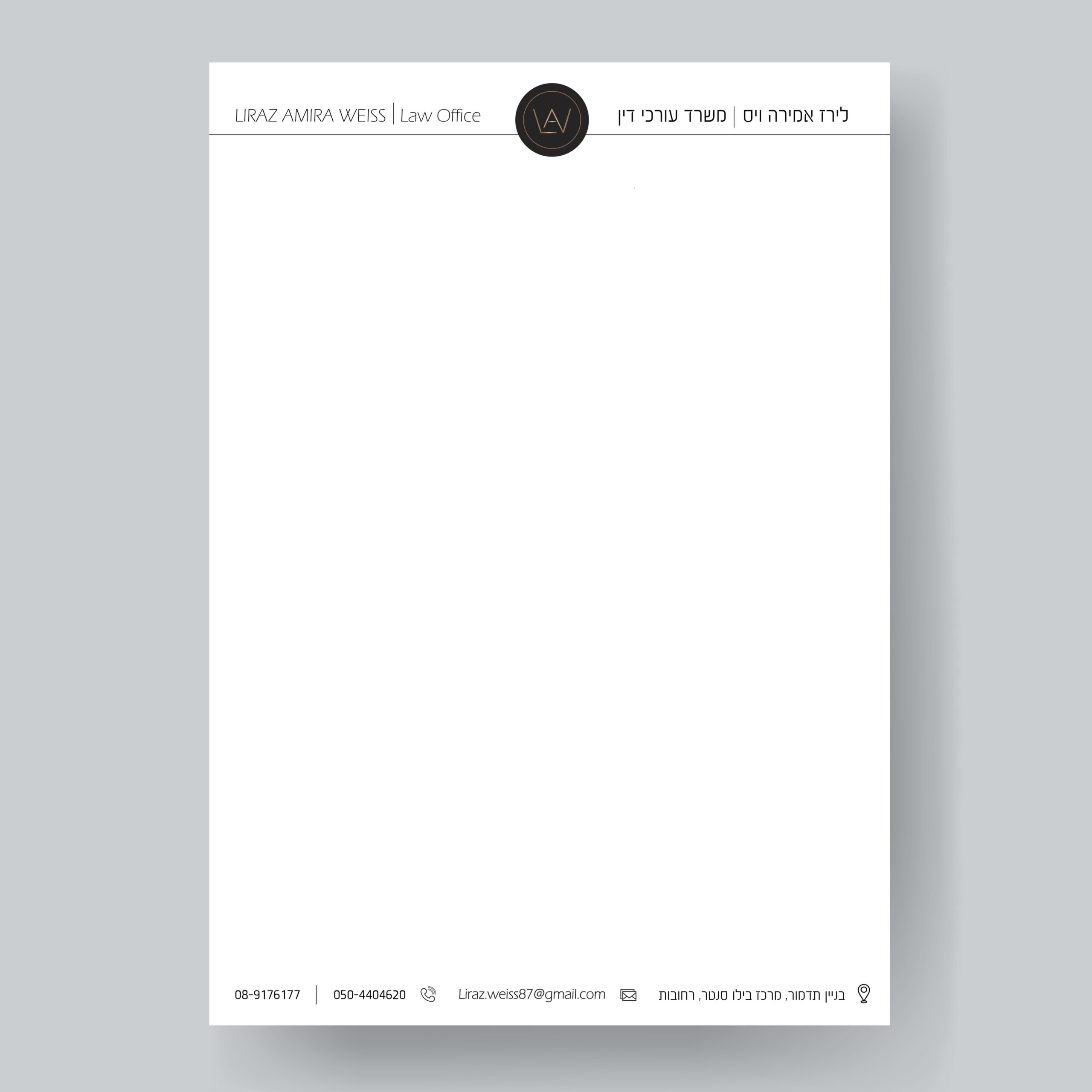 מיתוג המותאם באופן ייחודי לעו"ד לירז אמירה ויס, הכולל עיצוב לוגו, עיצוב כרטיסי ביקור ועיצוב דפי מכתבים. הלוגו מורכב מאותיות שמה של לירז, ומעוצב בסגנון יוקרתי לפי בקשתה. מה דעתכם?